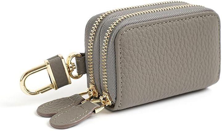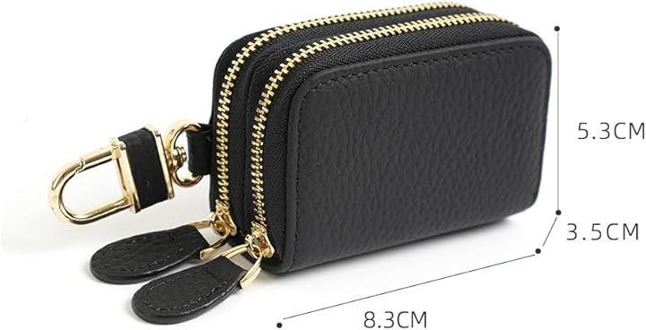 Genuine Leather Smart Key Case with 2 Keys, Double Zipper, for Men and Women