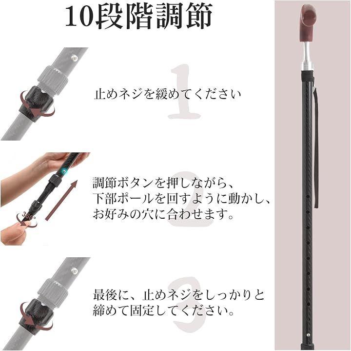 「10段階で高さ調整OK。」3cmごとにお好みの高さにぴったり調節(77~100cm)、ご自身に最適な長さでお使いいただけます。