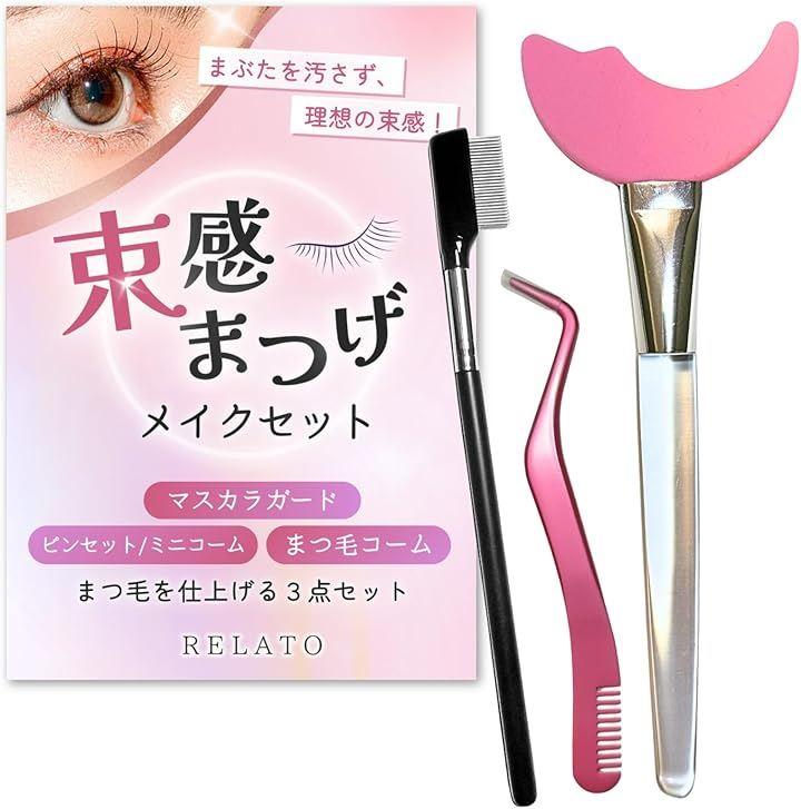 パッチリ目元を叶えるオールインワンセット。 マスカラガード(シリコン製)、先細ピンセット、まつげ用コームの3点セット。
