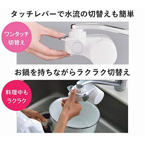 30%節水機能搭載※1、簡単水流切り替え、高除去タイプ、1L約5円※2、日本製、洗える浄水口キャップ、簡単取り付け、※1:原水シャワー使用時。当社品MK203Xと比較。流量は動水圧約0.1MPa ※2:3年間使用し、交換カートリッジSTC.V2J(8.5箱)を使用した場合。