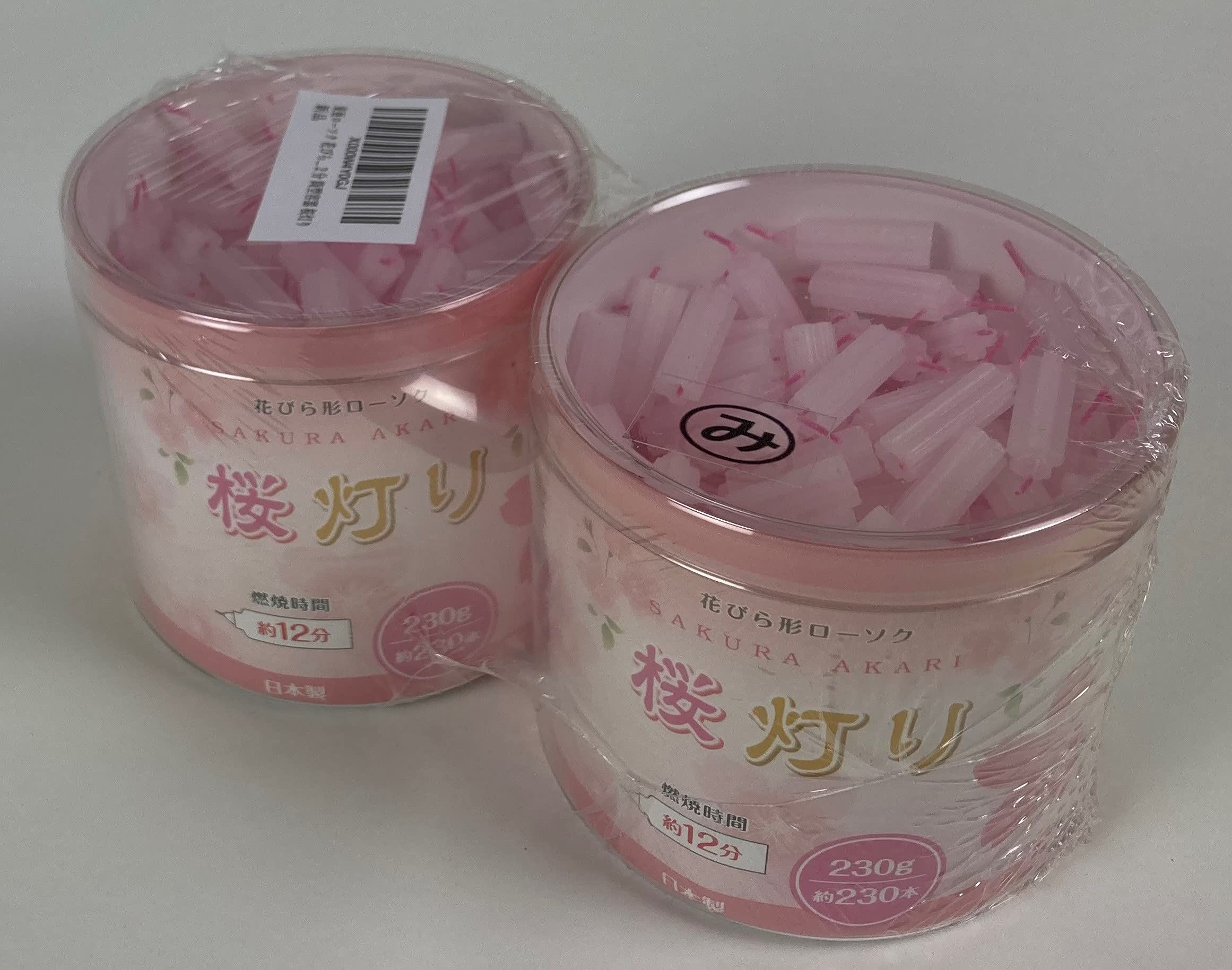 桜のはなびらの形をしたかわいらしいミニローソクです。 ろうそく自体が薄くピンク色に染まり、芯の鮮やかなピンクが透けて全体がやさしいピンク色です。