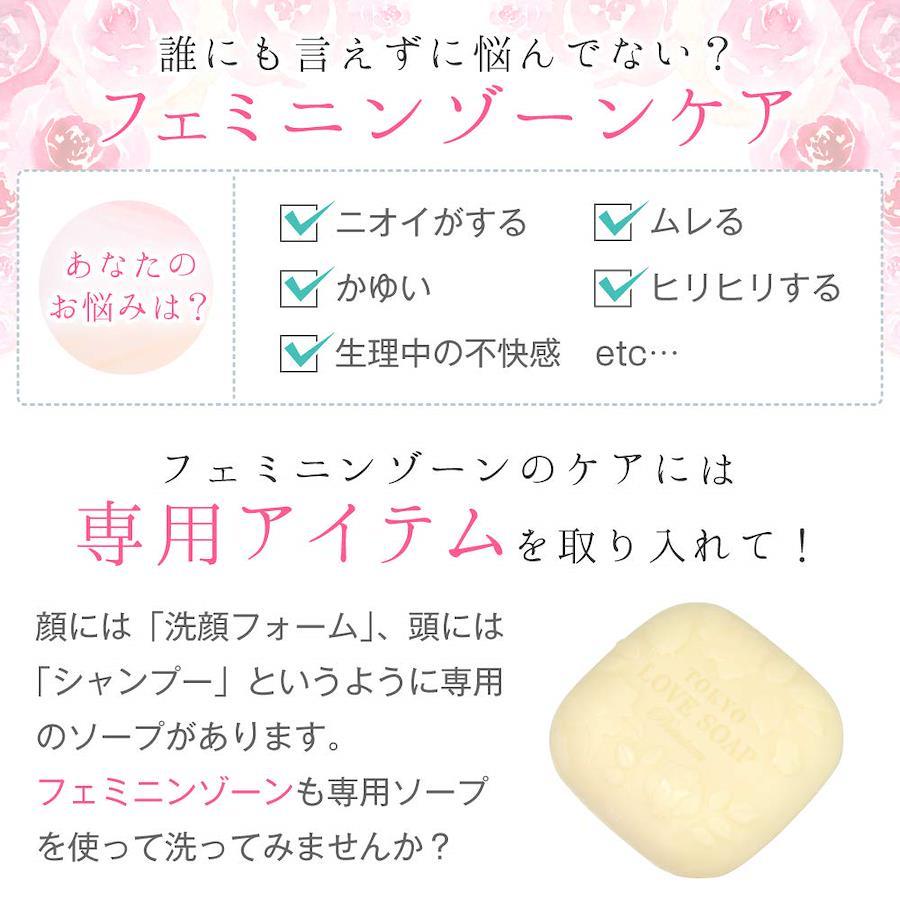 【プレミアム】保湿、美肌、美白に効果が期待できる《20種類》の成分をデリケートゾーンケアソープ「東京ラブソープ」に配合しました。【P保湿力】ヒアルロン酸Na、セリシン(加水分解シルク)に、浸透を意識した「低分子型ヒアルロン酸」を配合し、入浴後もしっとりモチモチ肌に。【P美容】植物性プラセンタと言われるバイオアンテージ(アロエベラ葉エキス、クズ根エキス、クロレラエキス)やグルタチオンなど、美肌成分をたっぷり配合したプレミアムは、海外で"美容石鹸"としても評価◎。【Pニオイ対策】シリーズ通して好評のカキタンニン・チャ葉エキスがニオイの原因をしっかり吸着し洗い流します。さらにプレミアムは、バラの女王「ダマスクローズ」と魅惑の香料「イランイラン」を調香し配合しました。ローズの優雅な香りがシャワー後も心地よく香ります。【250万個】発売から10年以上経ちシリーズ累計250万個突破。石油系合成界面活性剤・合成着色料(タール系色素)、鉱物油フリーでデリケートゾーンを優しくケアします。