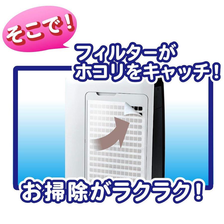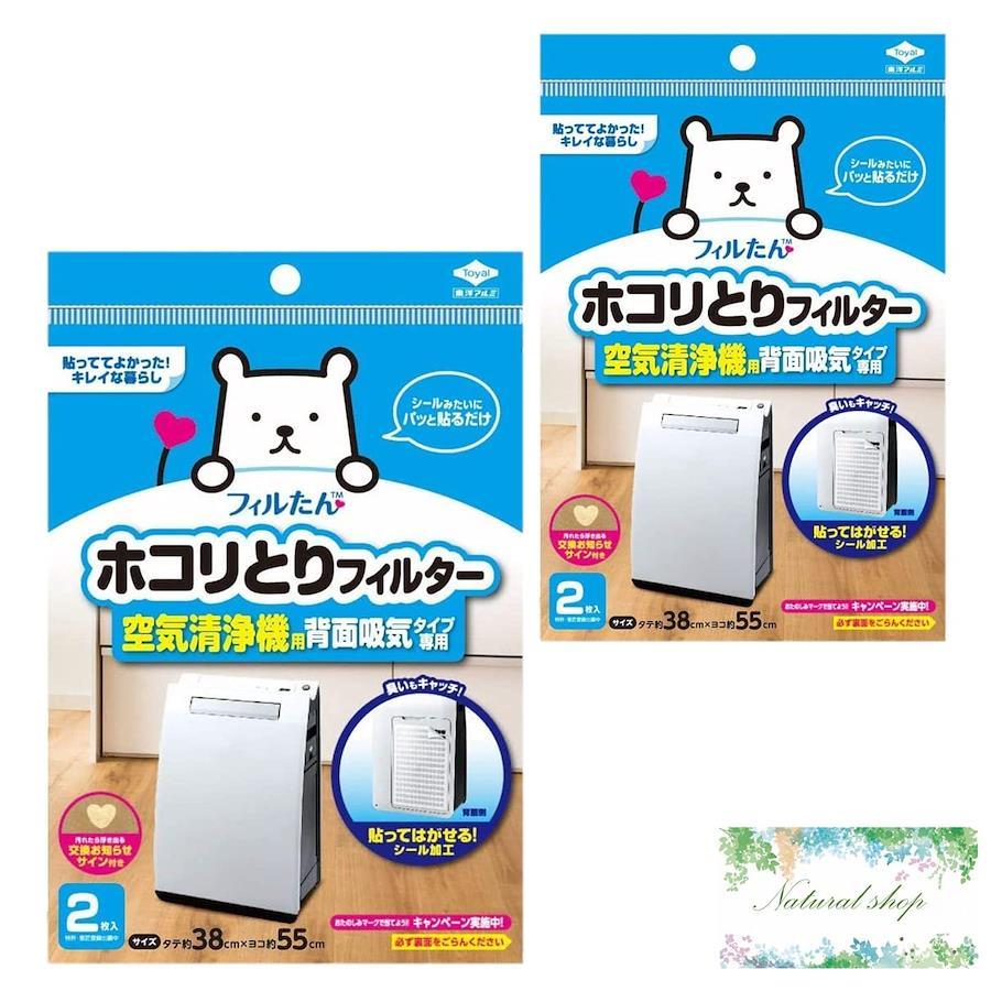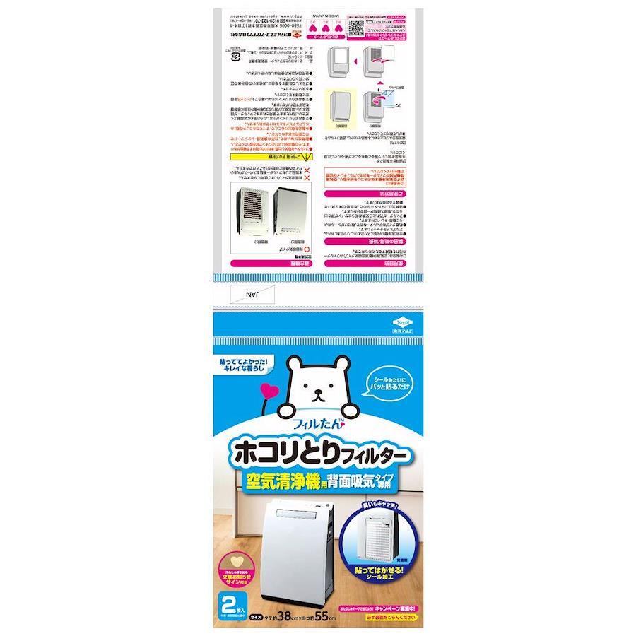東洋アルミ ホコリとりフィルター 空気清浄機用 2枚入×2セット 計4枚 38cm×55cm おまけつき まとめ買い●背面吸気タイプの空気清浄機にたまるホコリ汚れや花粉、ホルムアルデヒドをフィルターでガードします。 ●粘着タイプのフィルターなので、シールのように簡単・キレイに取付けできます。フィルターが汚れたら取替えサインが浮き出るので、取替え時期が一目でわかります。 ●消臭加工フィルターなので、お部屋の嫌な臭いを軽減する効果があります。 【使用方法】 ご使用前に必ず空気清浄機本体のホコリを拭き取り、空気清浄機内部のフィルターをお手入れし、キレイな状態で取付けてください。フィルターを吸気部分より大きめにカットし、透明フィルムをはがして取付けてください。