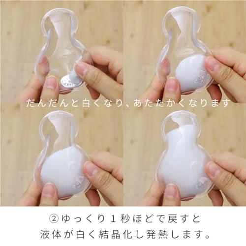 本体の中身は酢酸ナトリウムなので、液が漏れた場合も安全。【使用方法】1.中のカイロ本体の金属ボタンをカチっと押す。