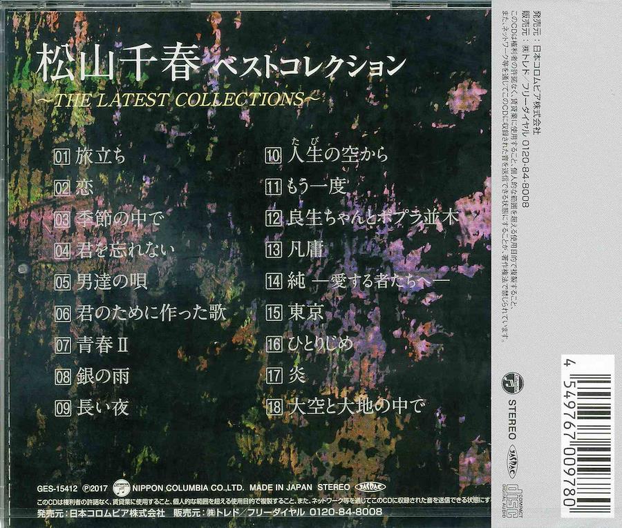 1.旅立ち2.恋3.季節の中で4.君を忘れない5.男達の唄6.君のために作った歌7.青春Ⅱ8.銀の雨9.長い夜10.人生の空から11.もう一度12.良生ちゃんとポプラ並木13.凡庸14.純-愛する者たちへ-15.東京16.ひとりじめ17.炎18.大空と大地の中で歌詞カード付