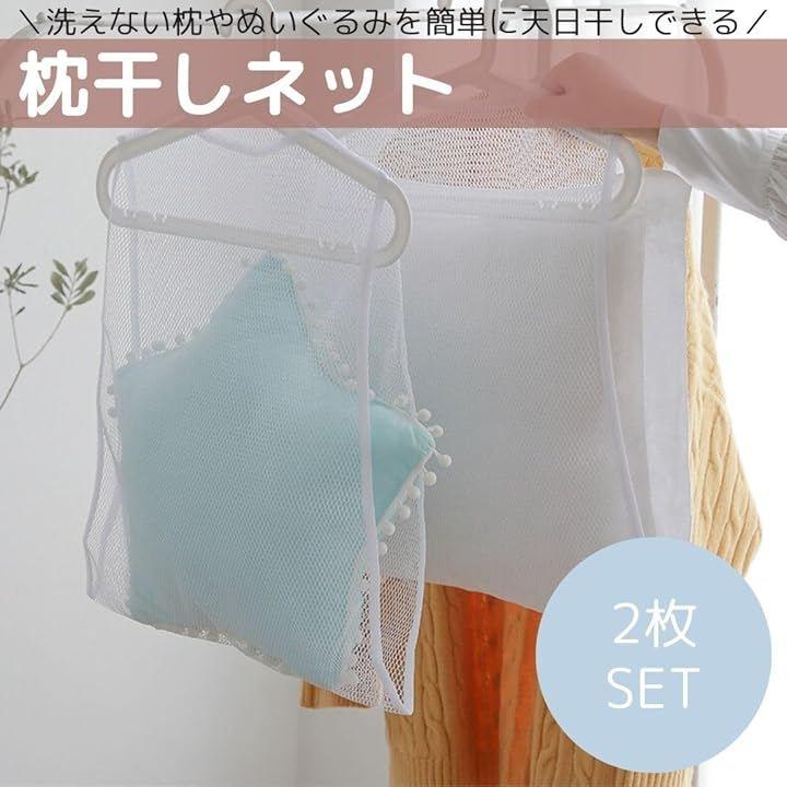 「大切な枕をしっかり乾燥ケア」枕干しネット2枚セットは、洗えない枕やぬいぐるみを簡単に天日干しできる優れもの。