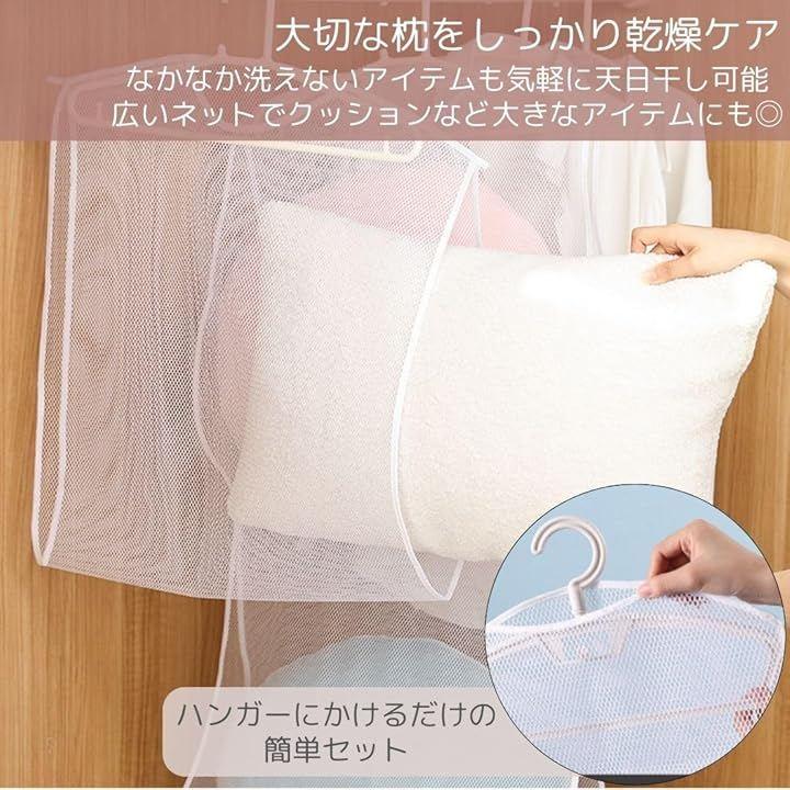 「抜群の通気性でしっかり乾燥」従来より大きめのメッシュ素材を採用し、通気性が非常に良く、枕やクッションをしっかり乾燥できます。