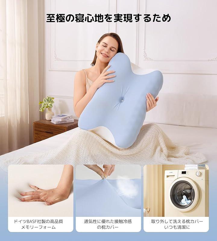 「至極の寝心地を実現」Pursay低反発枕は、ドイツBASF社製の高品質な低反発メモリーフォームを使用、沈み込み過ぎない弾力性と優れる安定性が特徴で、頭の形にゆっくりと包み込んで、就寝中の頭、首、肩への圧力を均等に分散させながら、しっかりと頭、首、肩をサポートしてくれる。