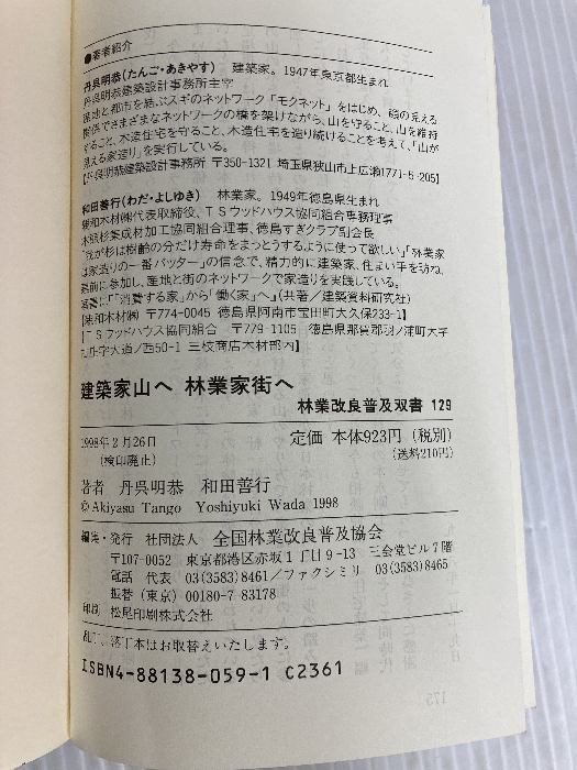 ■商品詳細■ 商品名・林業改良普及双書 No.129 建築家山へ林業家街へ-本物の家造りを目指す方へ 全国林業改良普及協会 丹呉 明恭/ ■商品状態■カバー無し、表紙にスレ、ヤケ、シミ、傷み、天地小口に多少のスレ、ヤケ、シミ、本に多数の書き込み、折れ目、スレ、ヤケ、シミ、のど割れ、見返しに、折れ目があります。本を読むことに支障はございません。※注意事項※■毎商品チェック後出品しておりますが、中古品ということもあり、多少の書き込み等のチェック漏れがあった際はご容赦下さい。■付録等の付属品がある商品の場合、記載されていない物は『付属なし』とご理解下さい。■併売販売をしているため、在庫切れの場合はキャンセルとなります。予めご了承ください。