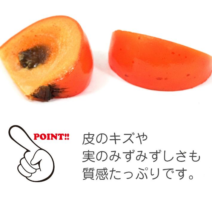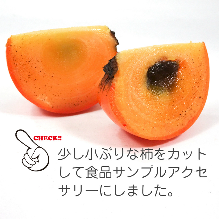 本物のカットした柿そっくりに作られた食品サンプルのアクセサリーです。