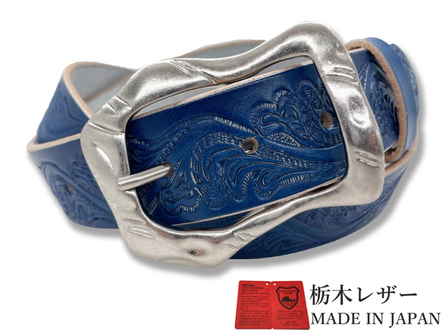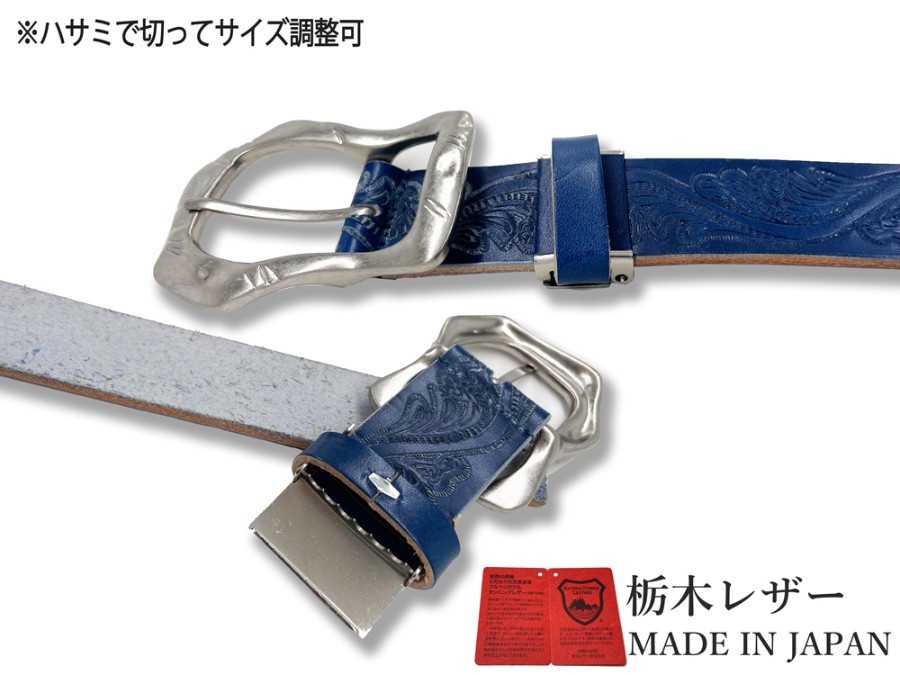 Tochigi Leather Belt for Men, Genuine Cowhide Leather, Casual, 35mm, 2 Sizes, Embossed Craft Finish, 6 Colors, Made in Japan, Suitable for Denim Jeans, Men's & Women's.