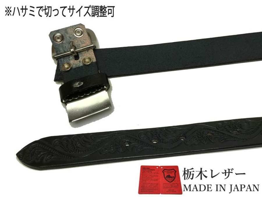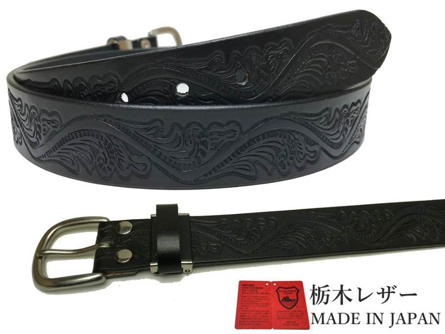 Tochigi Leather Belt for Men, Genuine Cowhide Leather, Casual, 35mm, 2 Sizes, Embossed Craft Finish, 6 Colors, Made in Japan, Suitable for Denim Jeans, Men's & Women's.
