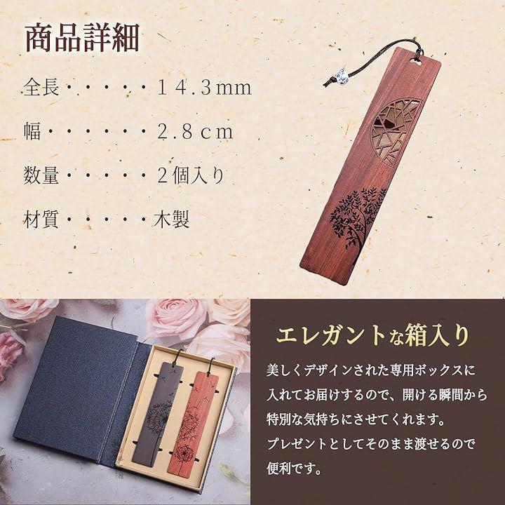 温もりある木製のしおり:厳選された天然木を使用した栞は、手触りが良く、自然のぬくもりを感じさせます。