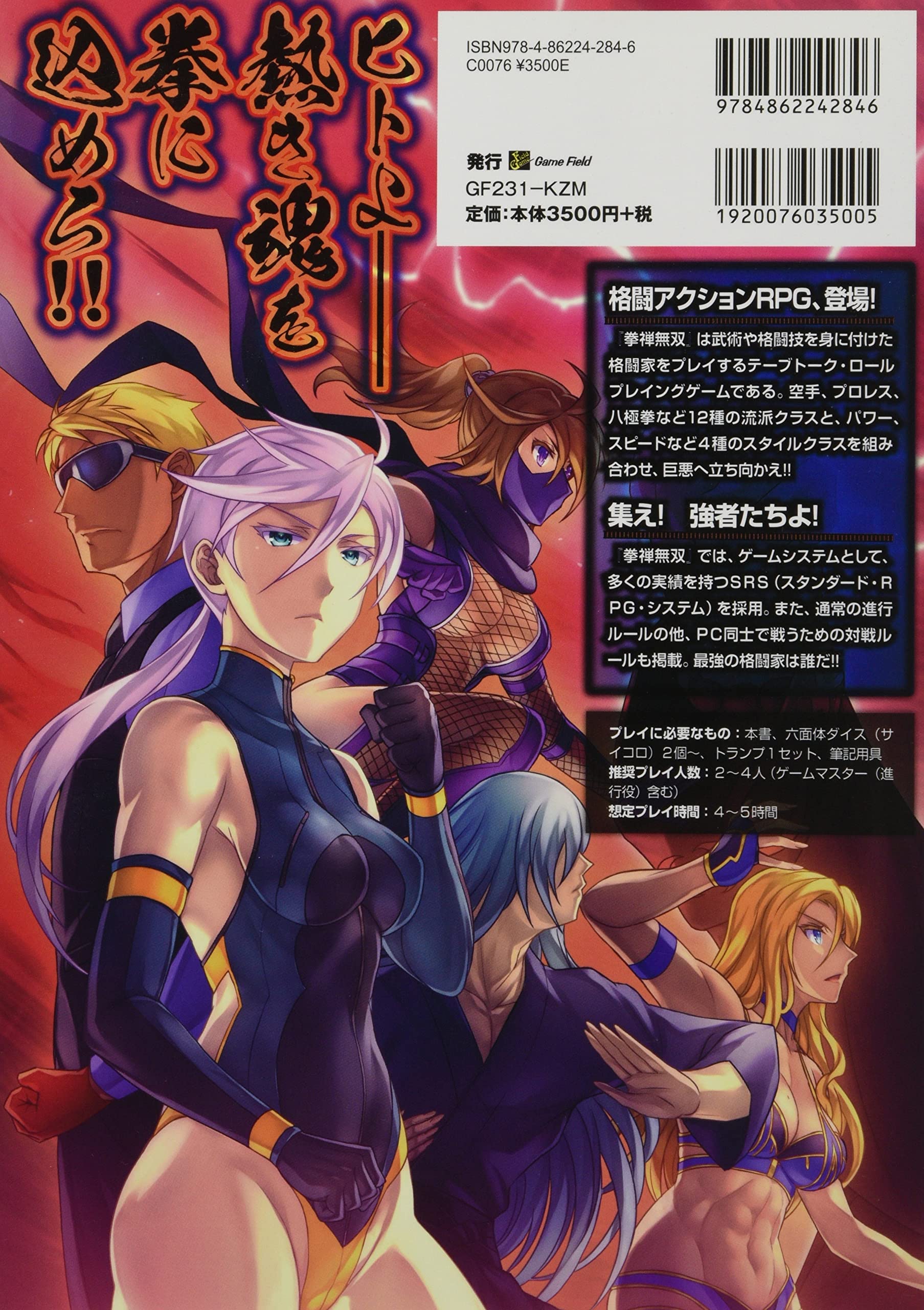 F.E.A.R.より格闘技をテーマとした新作TRPG登場。 『拳禅無双』では、プレイヤーは様々な武術の格闘家となって、トラブルを解決していきます。 システムにはSRSを採用し、格闘ゲーム、格闘マンガなどのような物語を、 誰でも簡単にTRPGとして楽しむことができるようになっています。 キャラクターは、空手や柔道といった武道のほか、プロレス、ボクシング、八極拳、ムエタイなど、 世界各地の徒手空拳で戦う格闘技を“流派クラス”として表現し、 パワー、スピード、テクニック、トリッキーといった“スタイルクラス”と組み合わせ、 打撃、投げ、関節技など多彩な特技を使う格闘家を創り出すことができます。 さらに、PCは気合カードを溜めることで強力な奥義を使用することができます。 また、一対一で戦うシチュエーションを再現できるよう、闘いを見守っているPCも、 ロールプレイによって気合カードが獲得できるなど、盛り上がれるような工夫がしてあります。 表紙イラスト:石田ヒロユキ 発売元:有限会社ファーイースト・アミューズメント・リサーチ 版型:書籍タイプ・B5 版型 :書籍タイプ・B5