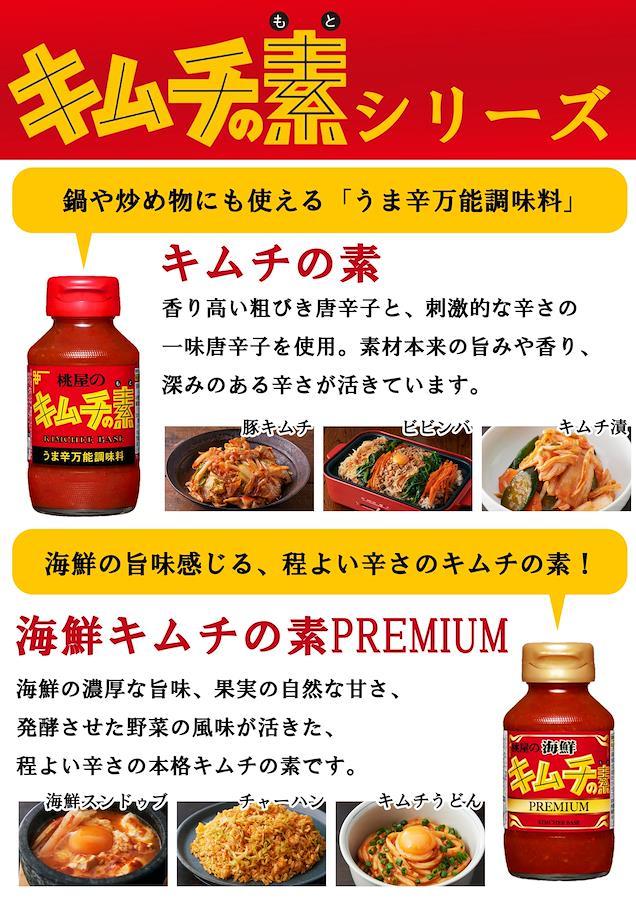 海鮮の濃厚な旨み、フルーツ本来の甘さ、発酵野菜の風味が存分に生きた本格キムチの素です。 それぞれの食材をバランスよく配合し、程よい辛さに仕上げているため、若年層から高齢層まで幅広い世代に食べていただけます。 海鮮は伝統製法で作られた当社の「いか塩辛」をはじめ、厳選したあさり、煮干し、昆布の4種をベースに旨み豊かな味わいに仕上げています。 フルーツは洋梨、デーツ、りんご、杏の4種を配合し、自然な甘さと酸味を加えています。 「海鮮の濃厚な旨味」「果実の自然な甘さ」「発酵させた野菜の風味」により、料理の具材の種類が少なくても奥行きのある、本格的な味わいにしあがりますので、キムチ漬、キムチ鍋はもちろん、スンドゥブ、チャーハン、など幅広くお使いいただけます。