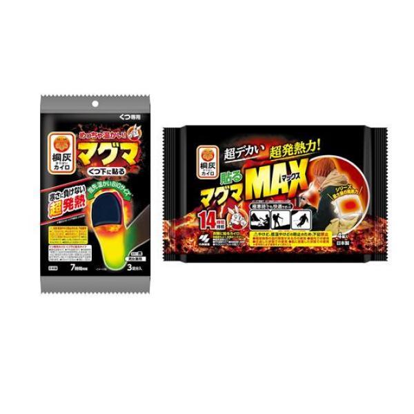 製品の特徴●小林製薬 桐灰カイロ マグマ くつ下に貼る●靴専用カイロ 靴下(ソックス)に貼るタイプ●めっちゃ温かい!寒さに負けない超発熱(*1)●指先温かいBIGサイズ(*1)●7時間持続●男女兼用●品名:使いすてカイロ●用途:くつ専用(くつ下に貼るタイプ)●最高温度:43℃●平均温度:35℃●持続時間:7時間(*2)●サイズ:9.5cm×12.5cm●カラー:黒色(ブラック)