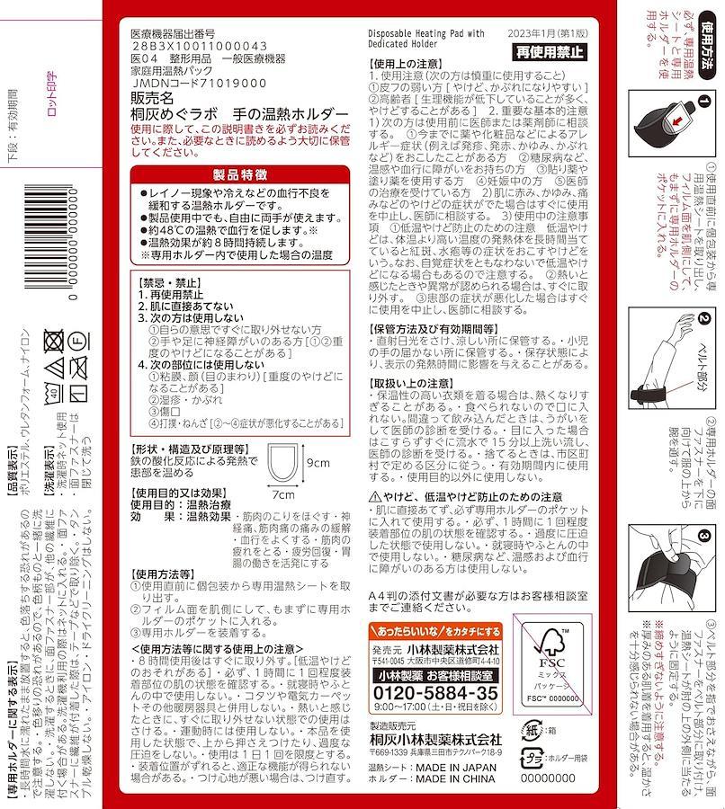 ※専用ホルダー内で使用した場合の温度 血行改善 商品サイズ (高さ×奥行×幅): 30mm×140mm×220mm ブラント名: 桐灰カイロ メーカー名: 小林製薬 商品の重量: 130 g