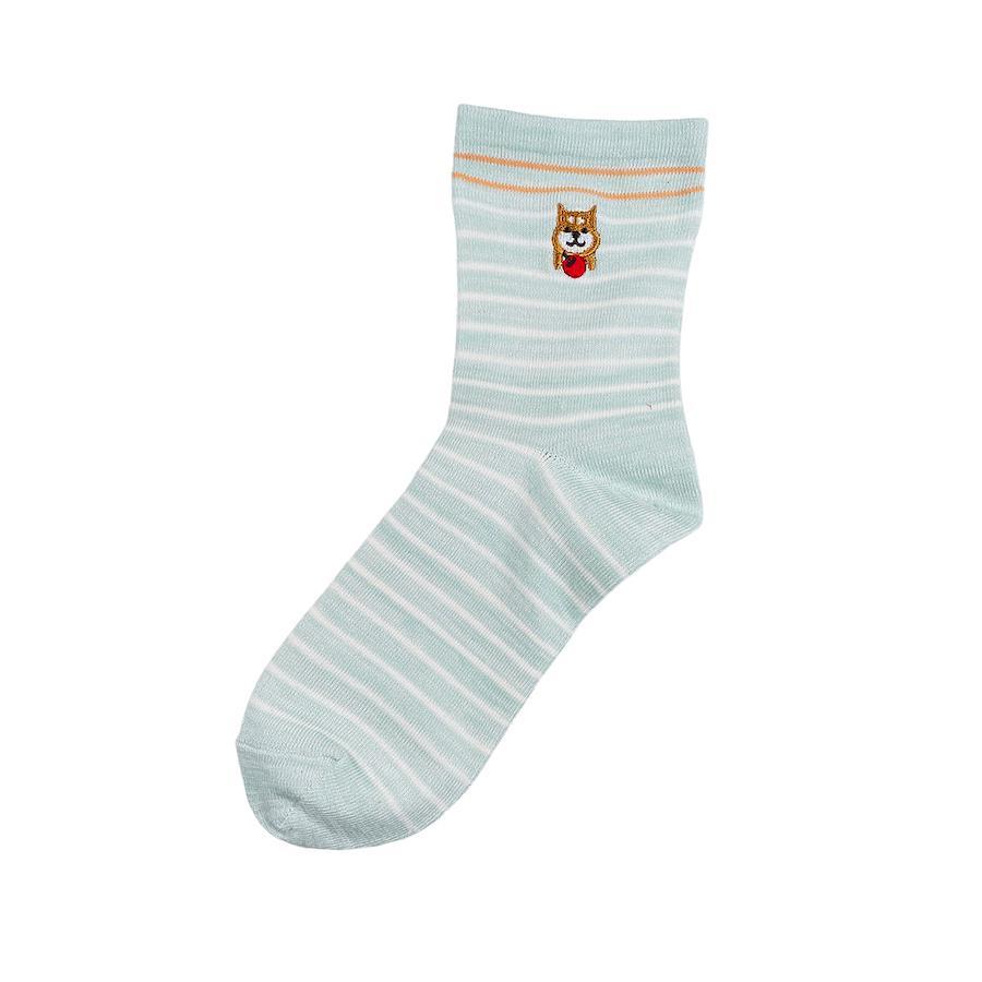 フィンランド語で【くつろぎ】の意味をもつ Rentoutoa。色々なデザインを集め目にも楽しめながら、履いても心がくつろげるをコンセプトにしたシリーズです。かわいいリンゴを抱えた柴犬のワンポイント刺繍があります。