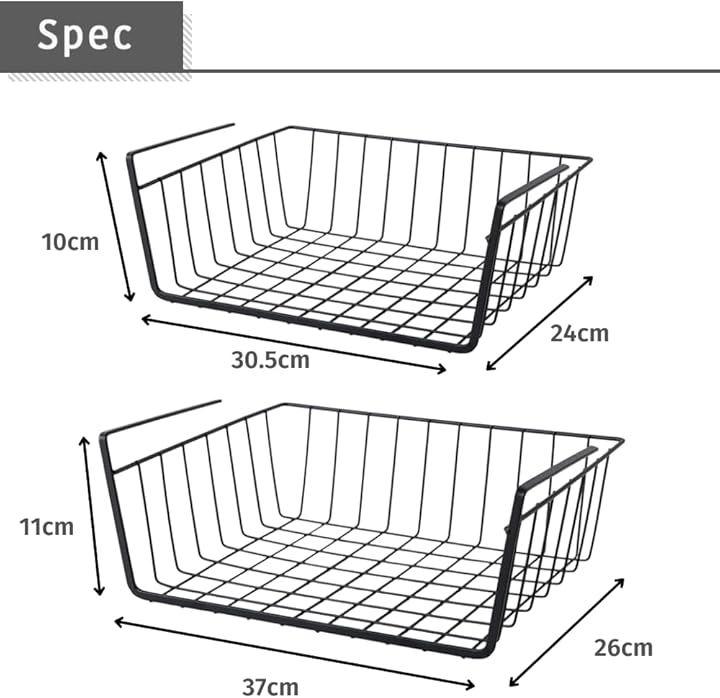 Under-shelf storage, hanging rack, basket, wide, under-desk, kitchen storage basket, set of 2