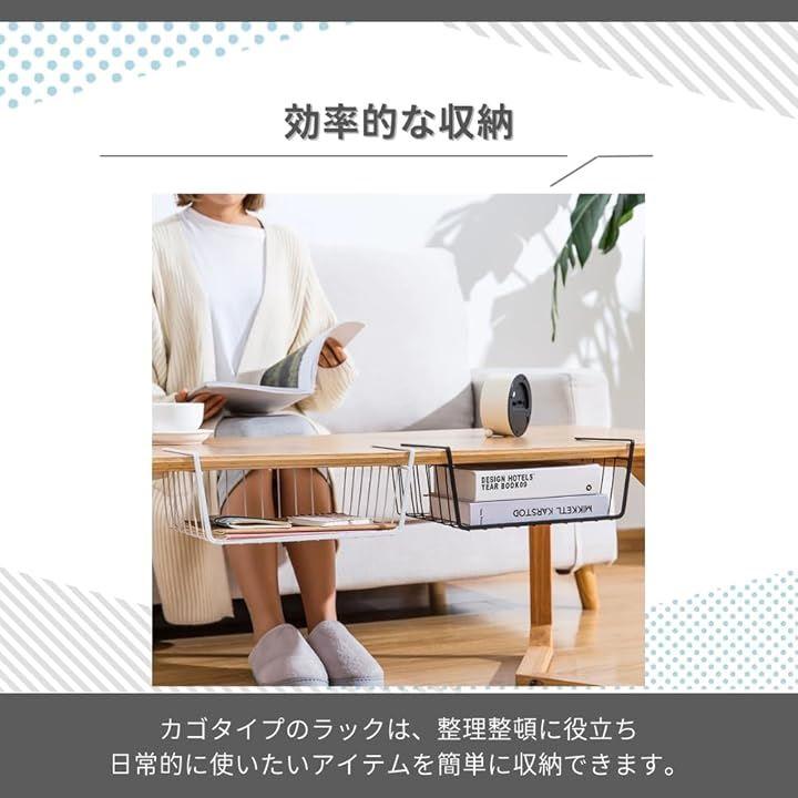 「効率的な収納」棚下収納の吊り下げラックは、デッドスペースを有効活用できるため、キッチンやデスク下の収納に最適です。