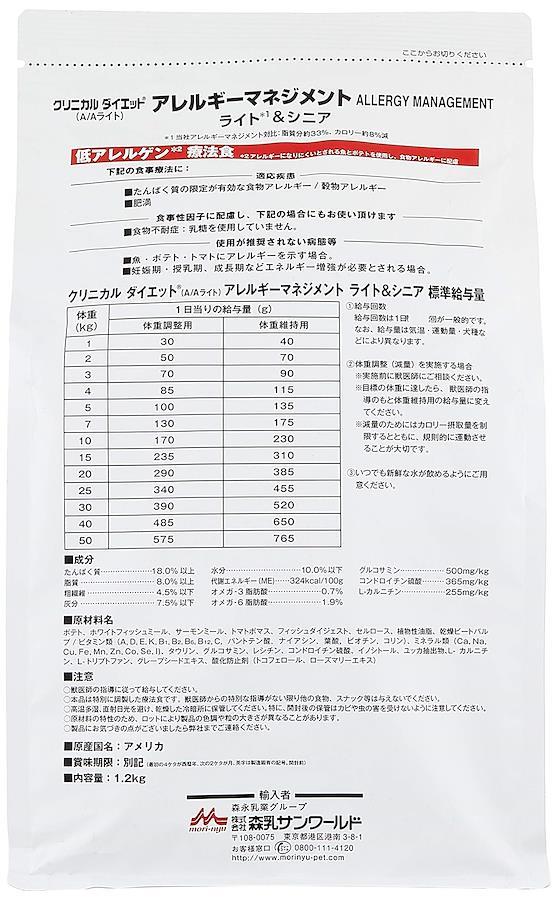 Morinyu Sun World Therapeutic Food Clinical Diet Allergy Management Light & Senior 1.2kg