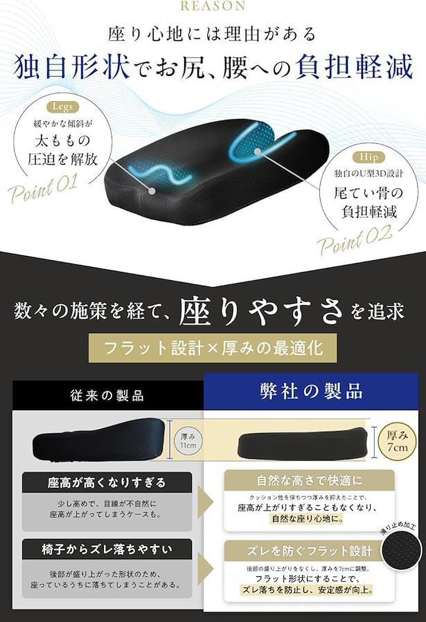 長時間座ってもお尻や腰にかかる負担を軽減します。