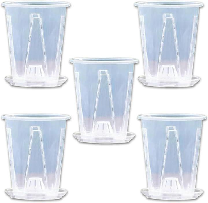 観葉植物や胡蝶蘭の育成に最適なプラスチック製スリット鉢5個セットです。