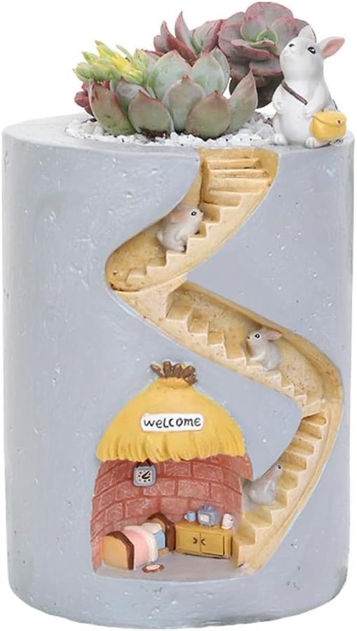 「かわいい動物のフラワーポット」ハリネズミとウサギがモチーフになっている可愛らしい動物のプランターです。