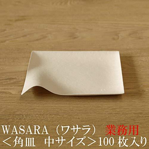 業務用 WASARA (ワサラ) 角皿 中 100枚セット 紙皿 紙の器 和漆器 お花見 使い捨て DM-002S