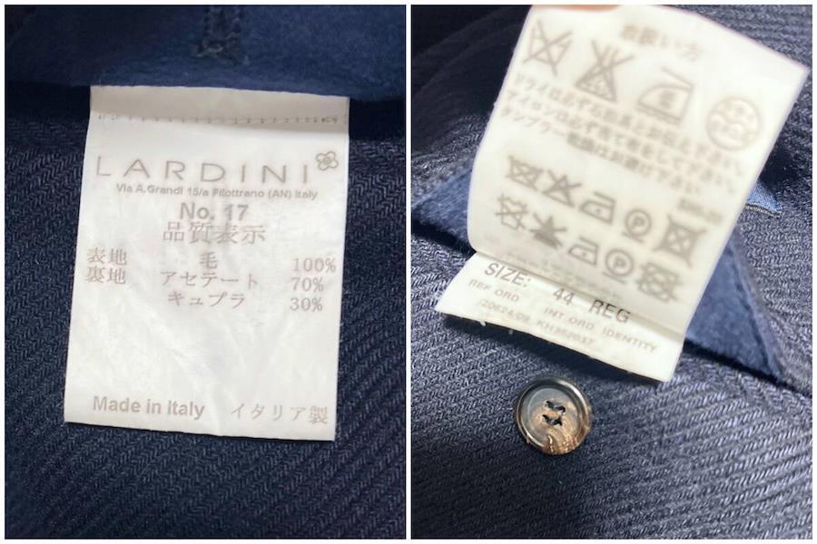 ブランド :ラルディーニ LARDINIモ デ ル :チェスターコート ダブル ダブルチェスターカ ラ ー :ネイビー 紺色素材:ウール 100%付属品 :ブートニエール LARDINIハンガーサイズ表記 : 44 REG計 測 :全長 96 cm 肩幅直線 41 cm 脇下幅 47 cm ウエスト 44 cm 袖丈 61 cm ※多少の誤差はご容赦ください。