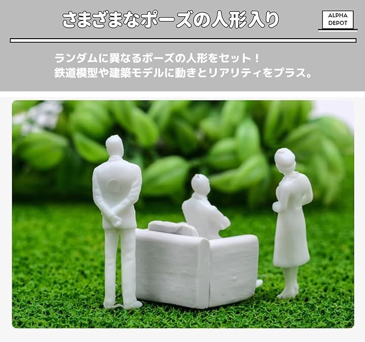 「さまざまなポーズの人形がランダムにセット」複数のポーズがランダムに含まれており、人物の配置によって異なるストーリー性を表現可能。