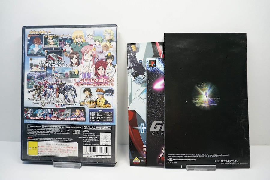 ストライクガンダムのパイロット「キラ・ヤマト」と、敵となってしまった親友「アスラン・ザラ」との戦いを中心に描く、21世紀の新ガンダム伝説「機動戦士ガンダム SEED」を題材とした、アクションシューティングゲームだ。多数のキャラクターたちが登場するTVアニメの原作ストーリーを、主人公キラ・ヤマトの視点で追体験できる。登場キャラクターによるフルボイスの通信が戦闘中の要所要所で入ることで、まるでアニメの中にいるかのような臨場感が巻き起こる。戦闘シーンでは、3D空間を舞台に派手で豪快な3Dスクロールアクションが繰り広げられる。全角度から迫る敵を自動でサーチしロックオンする「ニューロポインター」機能を利用して、鬼神の如き戦いっぷりを堪能しよう。対戦モードでは、原作に登場する各種MS(モビルスーツ)を選んでプレイできる点もポイント。デュエル、バスター、ブリッツ、イージス、そしてストライクの5種類のガンダムはもちろん、フリーダム、ジャスティスガンダムも使用可能だ。パッケージ、ゲーム中のキャラクターのカットインなどのイラストは、完全描き下ろし。原作に忠実なストーリー展開、そしてフルボイスで生き