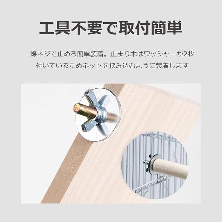 止まり木はワッシャーが2枚付いているためネットを挟み込むように装着します。