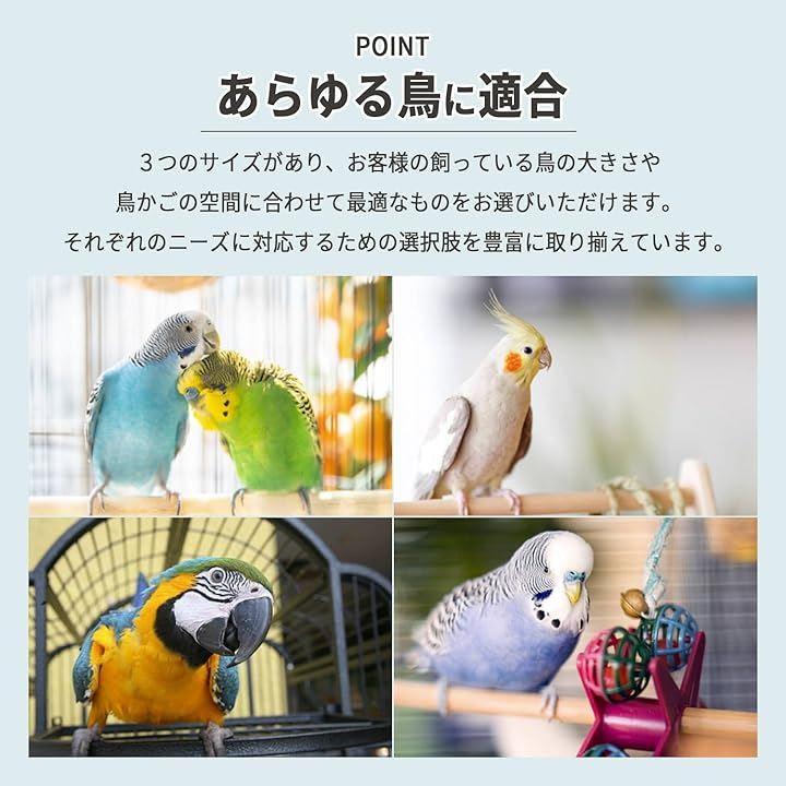 あらゆる鳥に適合:3つのサイズがあり、お客様の飼っている鳥の大きさや鳥かごの空間に合わせて最適なものをお選びいただけます。