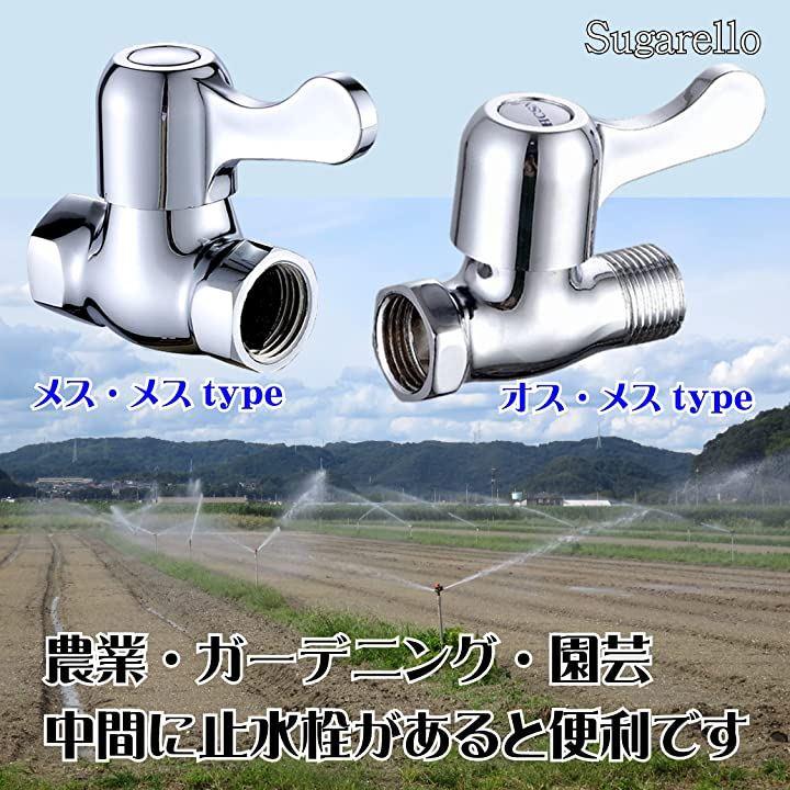園芸や農業用の給水、散水の場合、長いホースを使う場合は途中に止水栓を付けておくと、大元まで戻らなくても水道の開閉ができるので便利です。