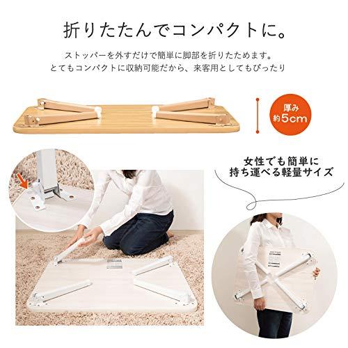 折りたたみ式のローテーブルは手頃なシンプルさのものが在りそうでなかなかないもの。シンプルなデザインで、お部屋を選ばずおしゃれな雰囲気を演出する。使わない時は折り畳んで収納することができる。一人暮らしの方にも急な来客用にも使える万能テーブル。一台用意しておくと安心。お茶を飲んだり、お菓子を食べたり、お子さんの食事テーブルにも手頃な大きさで役立つ。【ご注意】テーブルの縁に関してですが、PVCを貼り付けています。繋ぎ目の部分が若干ずれる可能性がございますが、こちらは不良ではございませんので予めご了承ください。 サイズ:75×50×29cm 本体重量:5.25kg 素材:天板:MDF 脚部:スチール エッジ:PVC 脚キャップ:PE 原産国:中国 ブラント名: 武田コーポレーション(Takeda corporation)