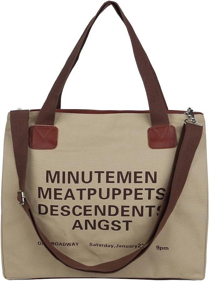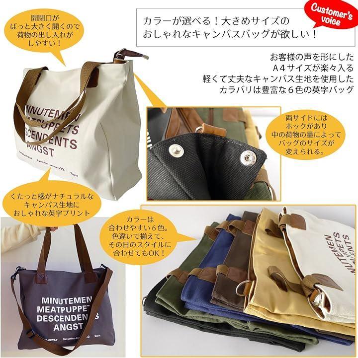 カラーが選べる大きめサイズのキャンバスバッグが欲しいとの声を形にしたA4サイズが楽々入る大きめサイズの、軽くて丈夫なキャンバス生地を使用した英字バッグです。