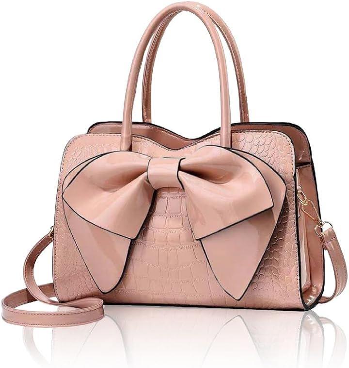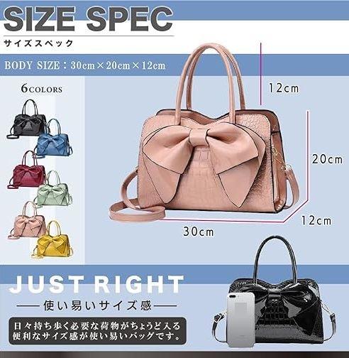 「デザイン性・実用性抜群のハンドバッグ」前面の大きな蝶結びとクロコ調が特徴のハンドバッグが登場。艶のある素材で高級感を演出、付属のショルダーベルトにて斜めがけスタイルにも変更可能、便利な2wayハンドバッグです。