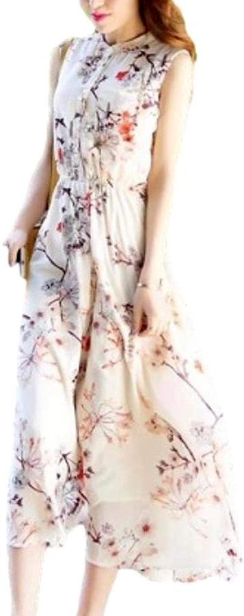 ・爽やかな小花柄のノースリーブマキシ丈ワンピース。