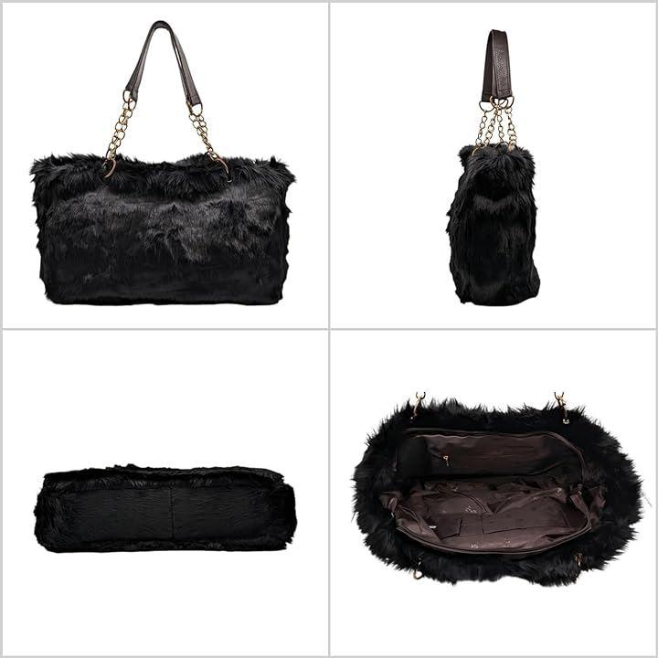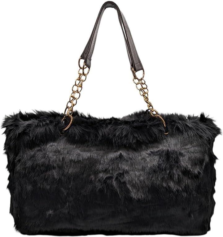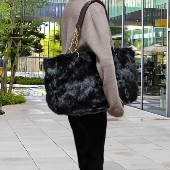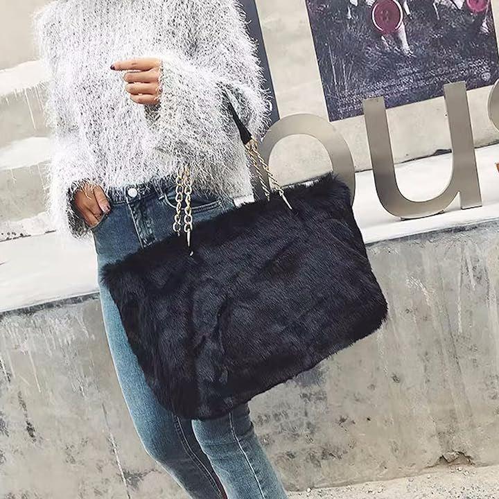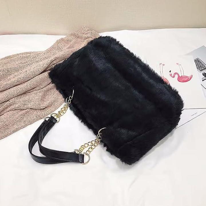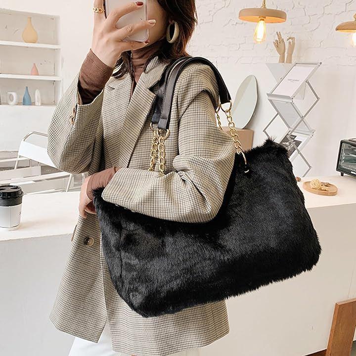 Mother's Day Fur Tote Bag for Women, Large, Fluffy, Over-the-Shoulder, Large Capacity