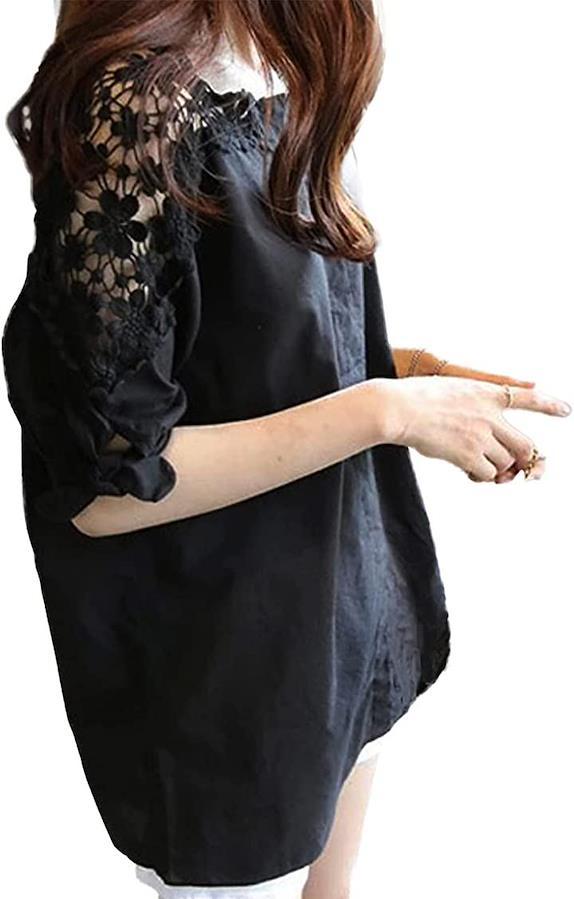 肩のレースが透けていて5分丈の袖なので女性らしさが演出できる1枚ではないでしょうか。