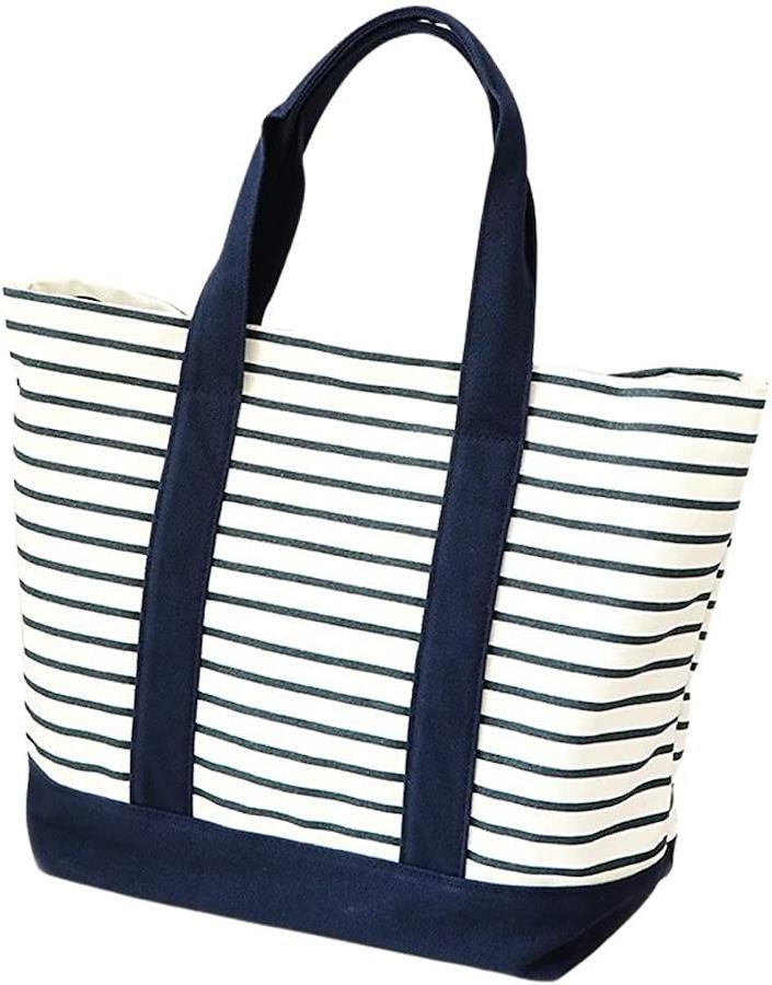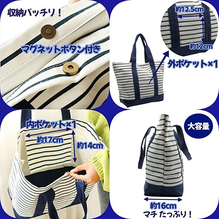 ・丈夫なキャンバス地素材を使用した、ボーダー柄のトートバッグです。