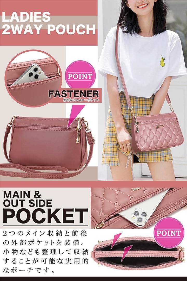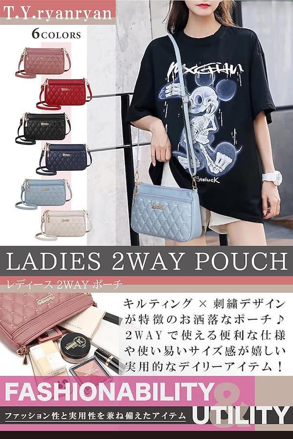 「ショルダー&ポーチの2WAY仕様」キルティングxハート型の刺繍デザインが特徴のオシャレなポーチ(バッグ)です。