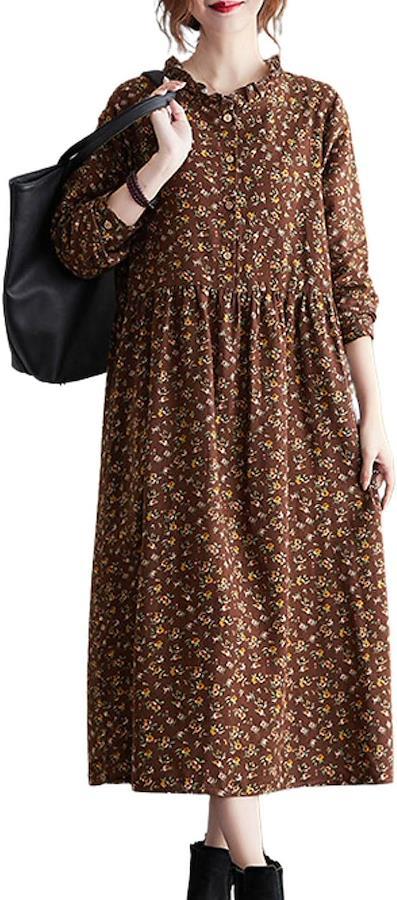 長袖のロングワンピースは春や秋に1枚でコーデが完結するため、忙しい朝の時短に活躍してくれるアイテムです。
