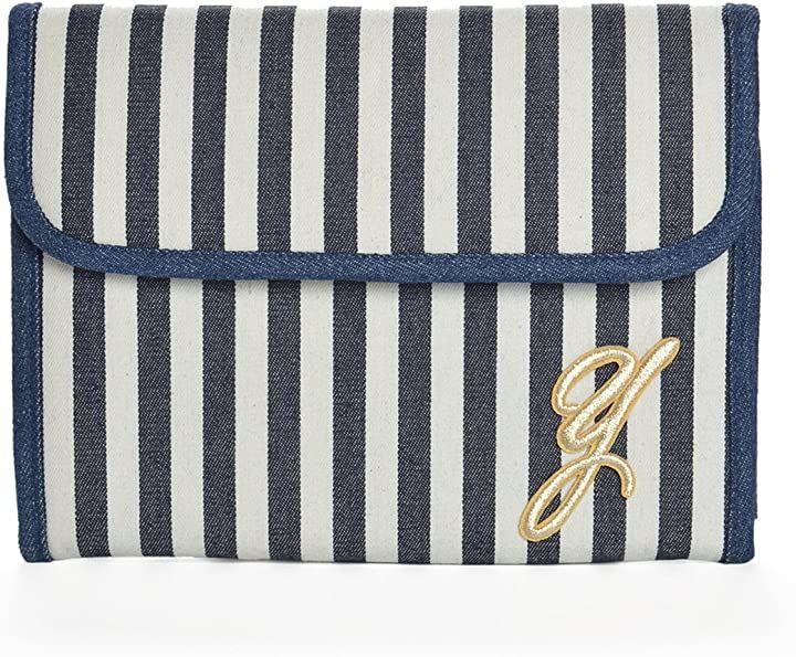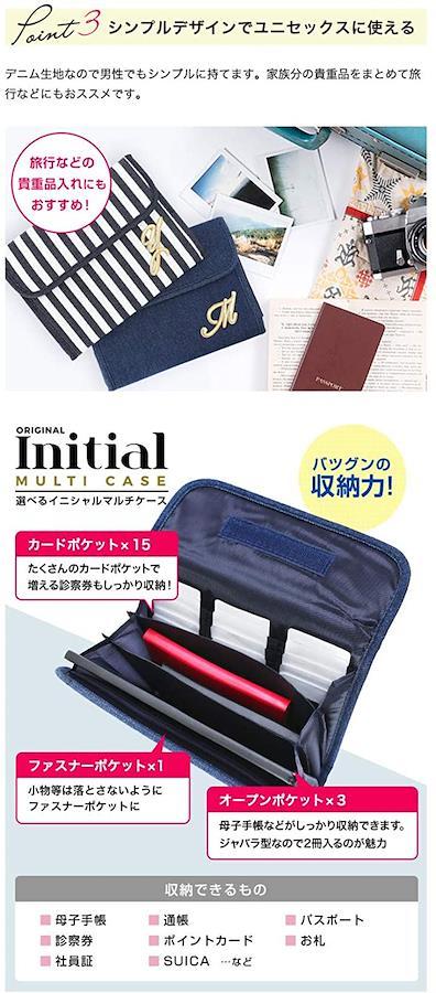 ・デニム地にイニシャルがついた 母子手帳 マルチケース です。