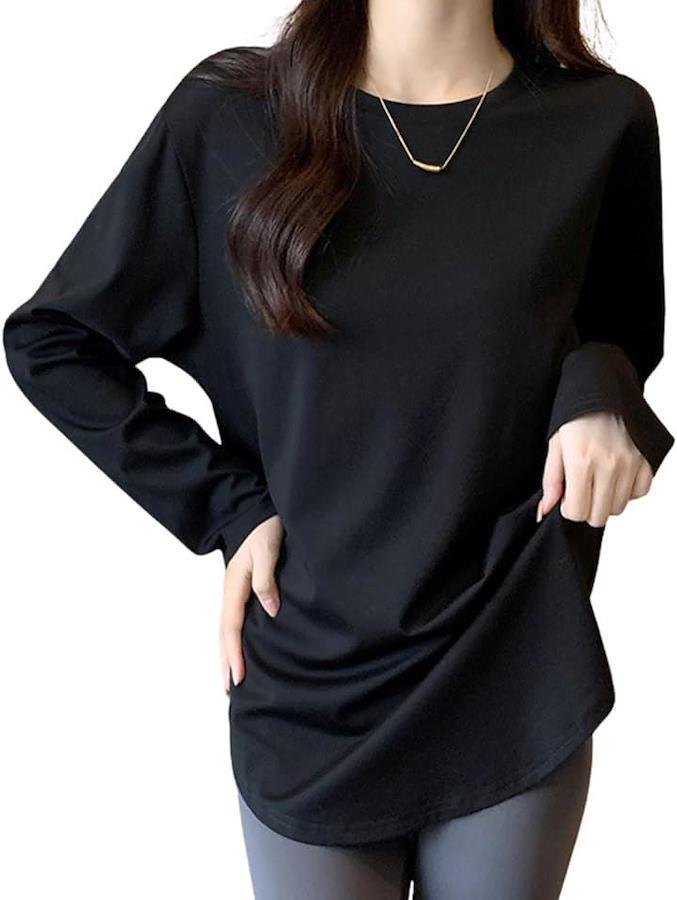 「快適な着心地と体型カバーを両立」ゆったりとしたシルエットが特徴のロンTレディースアイテムは、動きやすさを重視しながらも、気になる体のラインをさりげなくカバー。