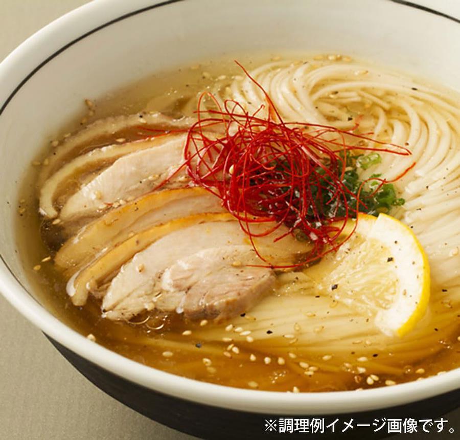 比内地鶏出汁をベースに作った特製塩スープで食べる稲庭うどん