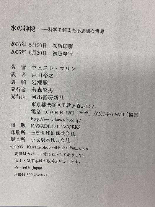 The Mystery of Water: A Mysterious World Beyond Science, Kawade Shobo Shinsha, West Marine