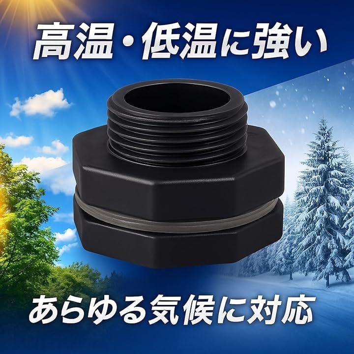 「高温・低温でも安心」あらゆる気候に対応 夏の直射日光、冬の冷え込みにも強い。高温・低温の温度差に耐える素材で、年中安心して使える水タンク接続パーツです。
