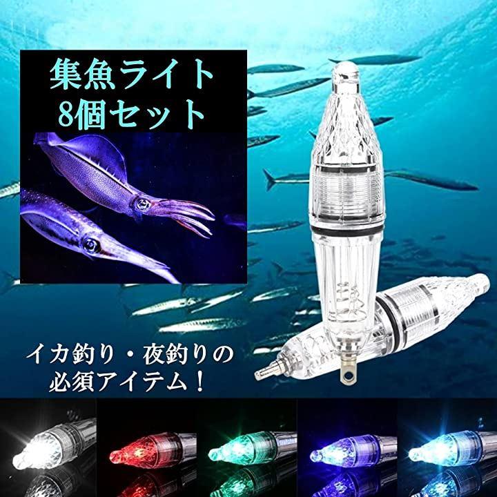 「セット内容」集魚灯x8「サイズ」長さ約12cm 「電源」単三電池(別売)*点滅のみです。